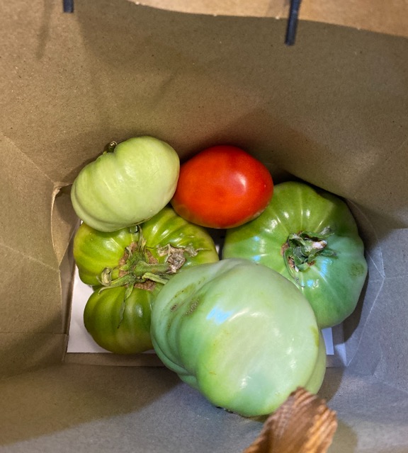A few weeks ago, I harvested four large green tomatoes from my garden. They were at the bottom of the vine, completely shaded. I thought